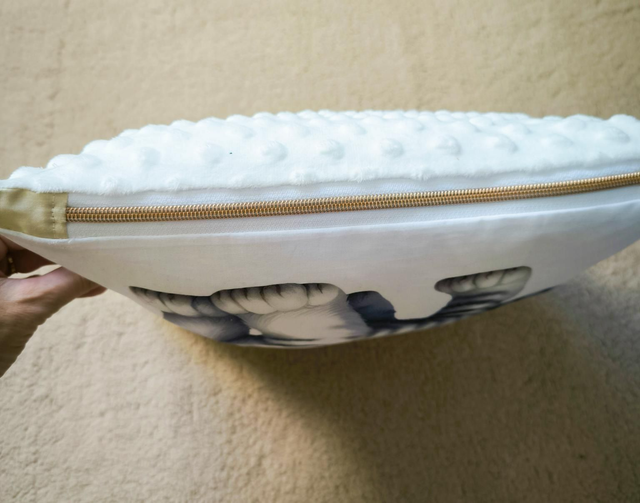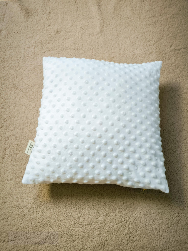 Tissu extérieur composé de coton Oeko-tex et de minky, le coussin de rembourrage mesure 40X40 cm.