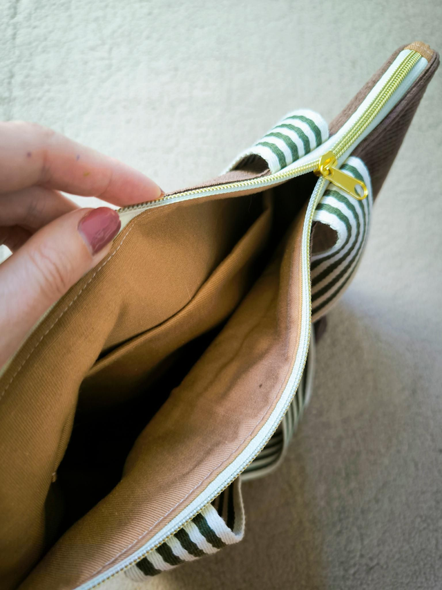 L’intérieur est doublé d’un coton upcyclé, pour une touche éthique et responsable, avec une petite poche pratique pour vos essentiels (clé, téléphone, rouge à lèvres…).